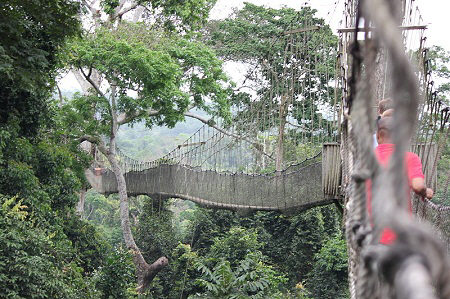 Przejazd do Parku Narodowego Kakum - rezerwatu tropikalnego lasu deszczowego. Na jego terenie o powierzchni 37,5 tysięcy ha. żyje wiele gatunków fauny i flory, w tym kilka gatunków zwierząt rzadkich, zagrożonych wyginięciem. Zwiedzanie parku odbywa się pieszo, w grupach z przewodnikiem (ok. 2 godziny). Trasa prowadzi przez gęsty las tropikalny. Atrakcją są wiszące kładki zawieszone na wysokości ok. 30 metrów (10 pięter).