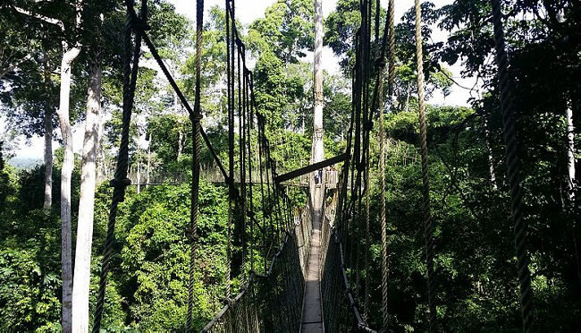 Przejazd do Parku Narodowego Kakum - rezerwatu tropikalnego lasu deszczowego. Na jego terenie o powierzchni 37,5 tysięcy ha. żyje wiele gatunków fauny i flory, w tym kilka gatunków zwierząt rzadkich, zagrożonych wyginięciem. Zwiedzanie parku odbywa się pieszo, w grupach z przewodnikiem (ok. 2 godziny). Trasa prowadzi przez gęsty las tropikalny. Atrakcją są wiszące kładki zawieszone na wysokości ok. 30 metrów (10 pięter).